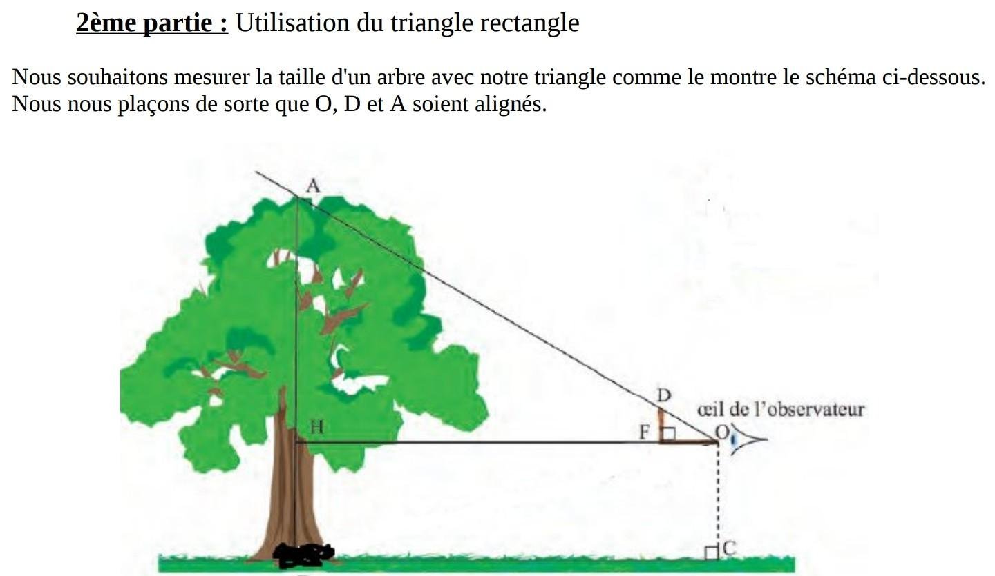 À partir de ces mesures nous avons pu utiliser le théorème de Thalès puisque nous avons admis que (FD) est parallèle à l’arbre.
